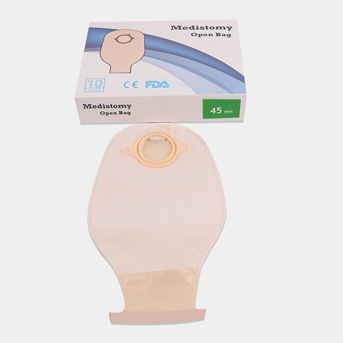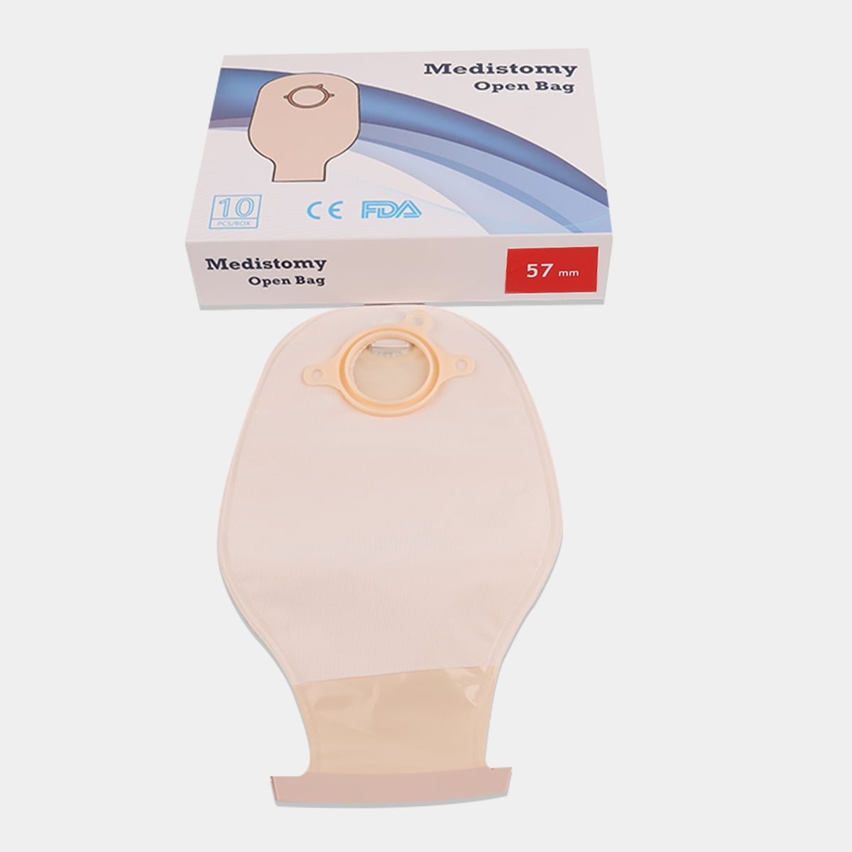 تم تصميم كيس الكولوستومي الجانبي بحيث يتم فتحها من الأسفل عند التفريغ.