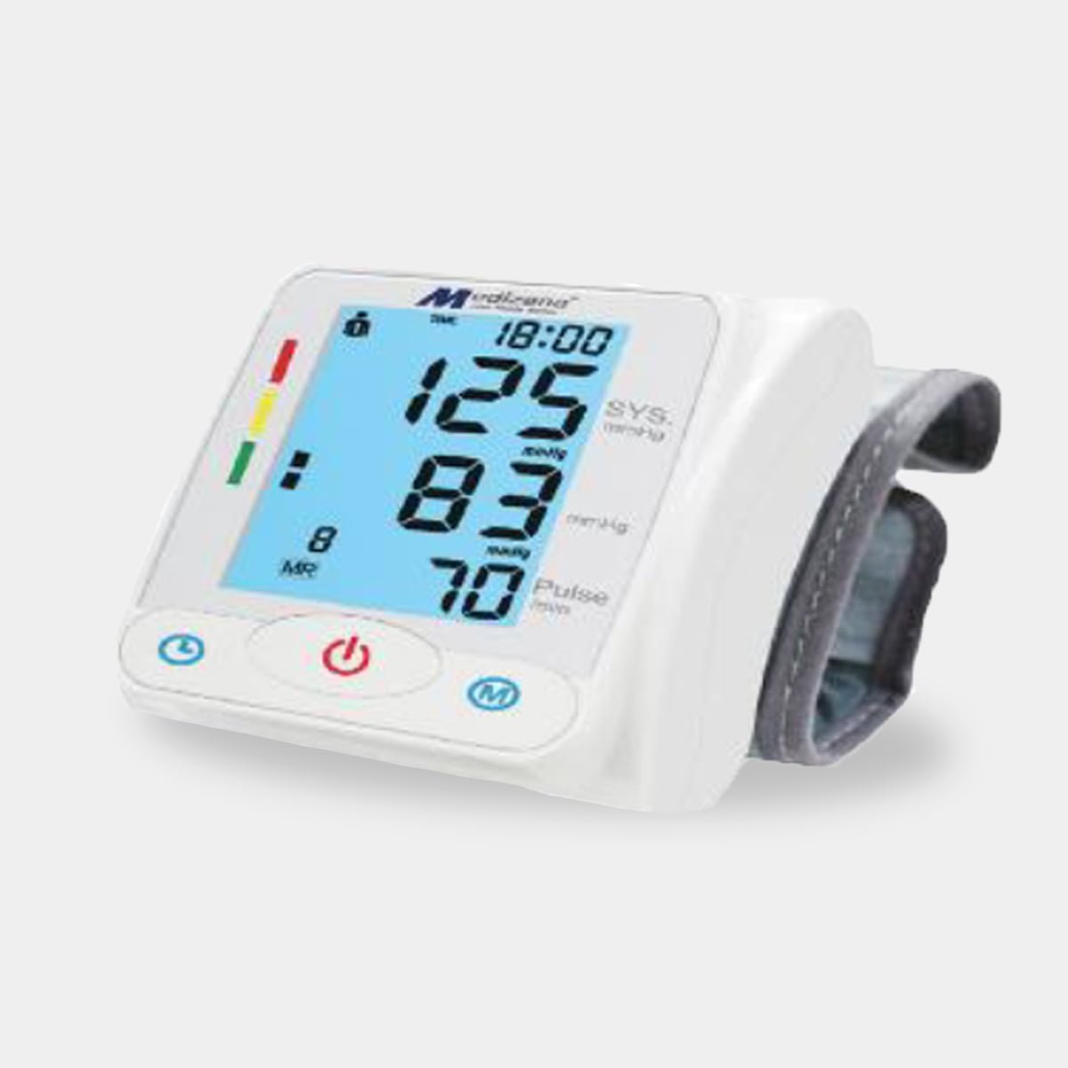 يُركب في المعصم، حيث يقوم بقياس وتخزين معدلات ضغط الدم و النبض مع شاشة واضحة لقراءة سهلة.